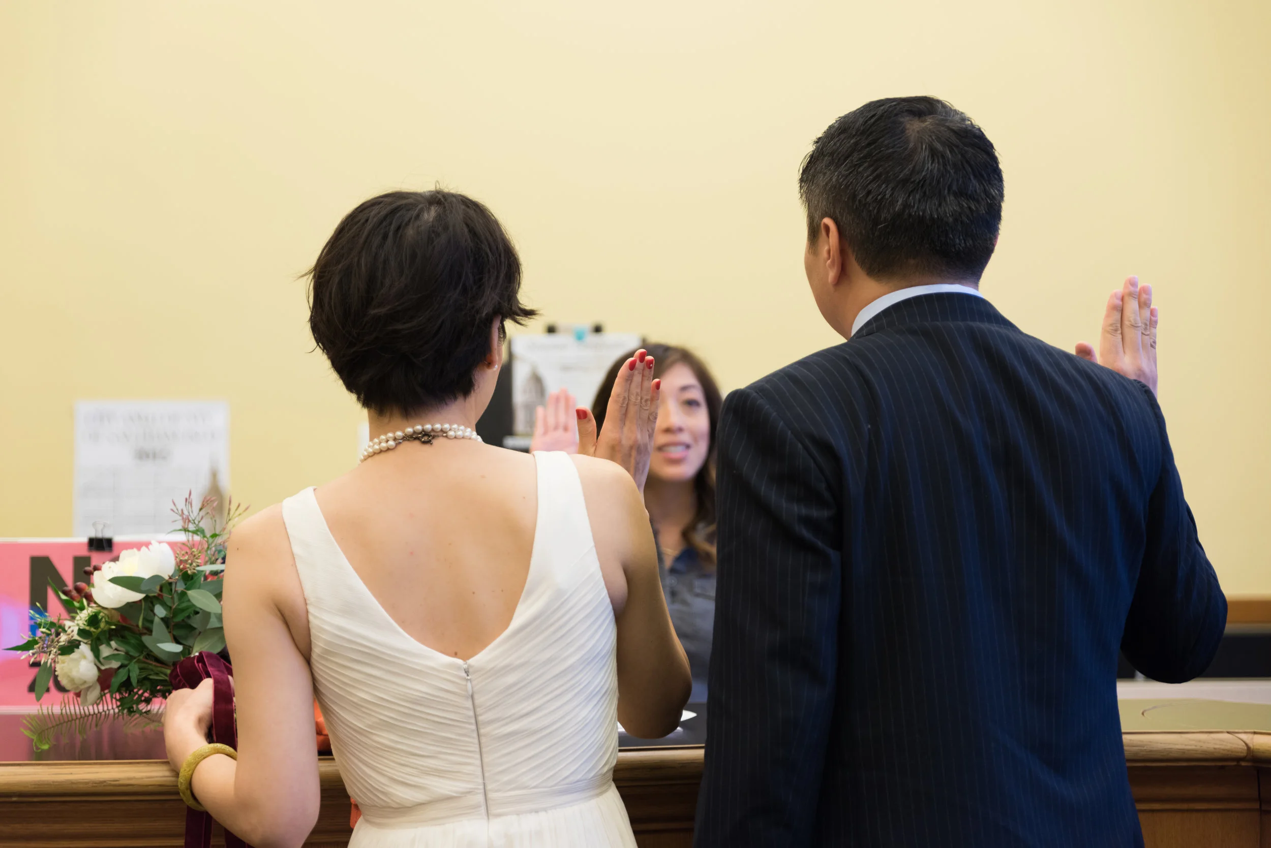 Remember that if you're getting married at City Hall, only six guests are allowed to attend due to space constraints. Though this may seem limiting, many of my clients have really enjoyed that the small number of guests means that they can really enjoy the company of only their very closest friends and family.