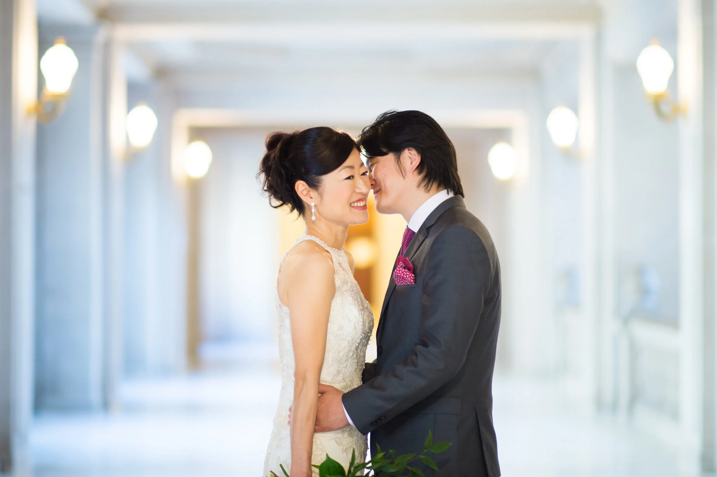 雨の天気予報で、シティホール内での撮影がメインでしたが、外に出るときれいな青空が広がっていて、念願の青い空の下での撮影もリクエストして叶い、大変満足です。